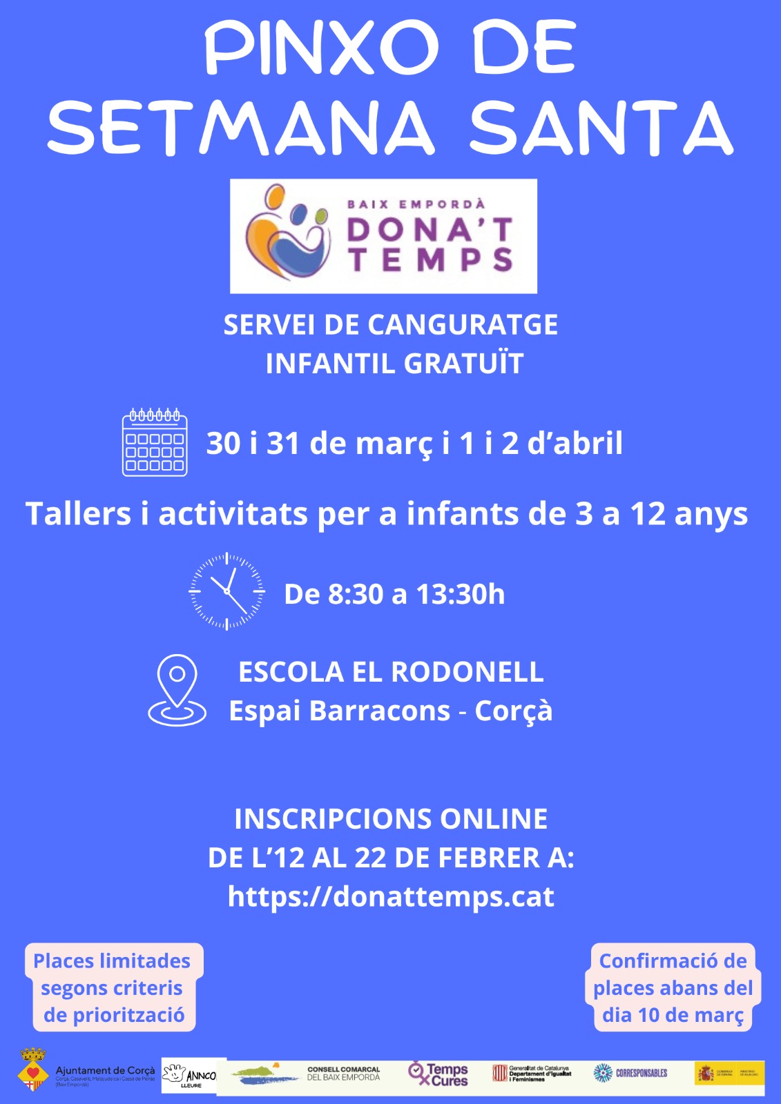 Tallers i activitats per a infants de 3 a 12 anys Dies: 30 i 31 de març i 1 i 2 d’abril de 2026Horari: de 8:30 a 13:30 hEscola El Rodonell (espai barracons)Gratuït Inscripcions online del 12 al 22 de febrer a través de l’enllaç.(confirmació de places a les famílies màxim el 10 de març) … Read more