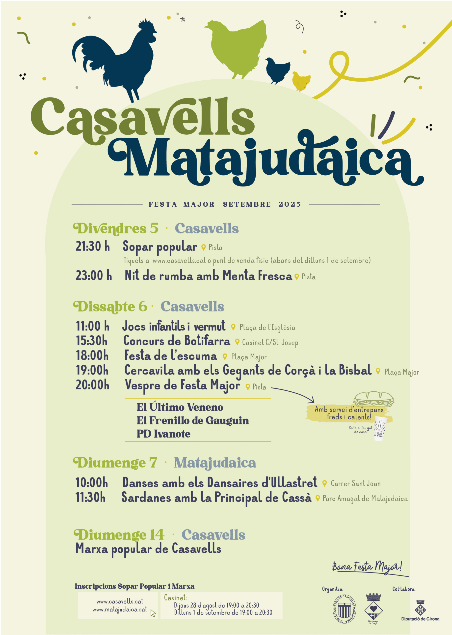Divendres 5, dissabte 6 i diumenge 7 de setembre, Festa Major de Casavells i Matajudaica.