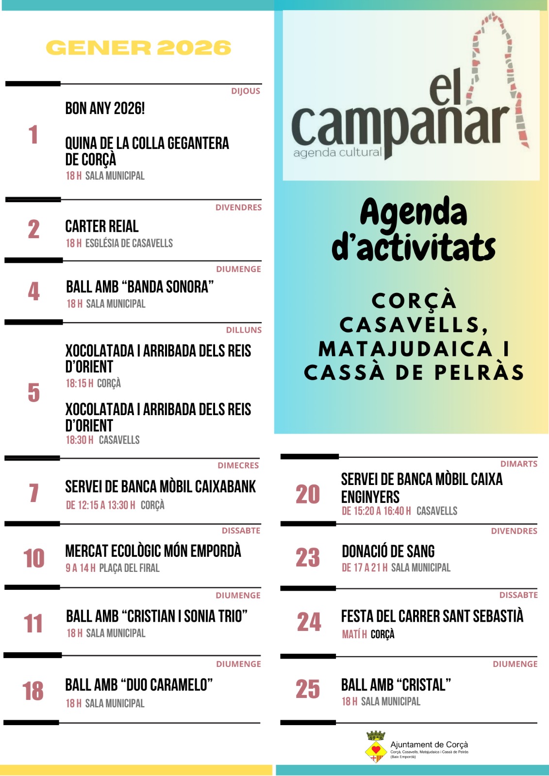 Del 6 de desembre 2025 al 6 de gener de 2026, gaudeix les activitats preparades per aquestes festes a Corçà, Casavells, Matajudaica i Cassà de Pelràs. Us hi esperem!!! AGENDA |