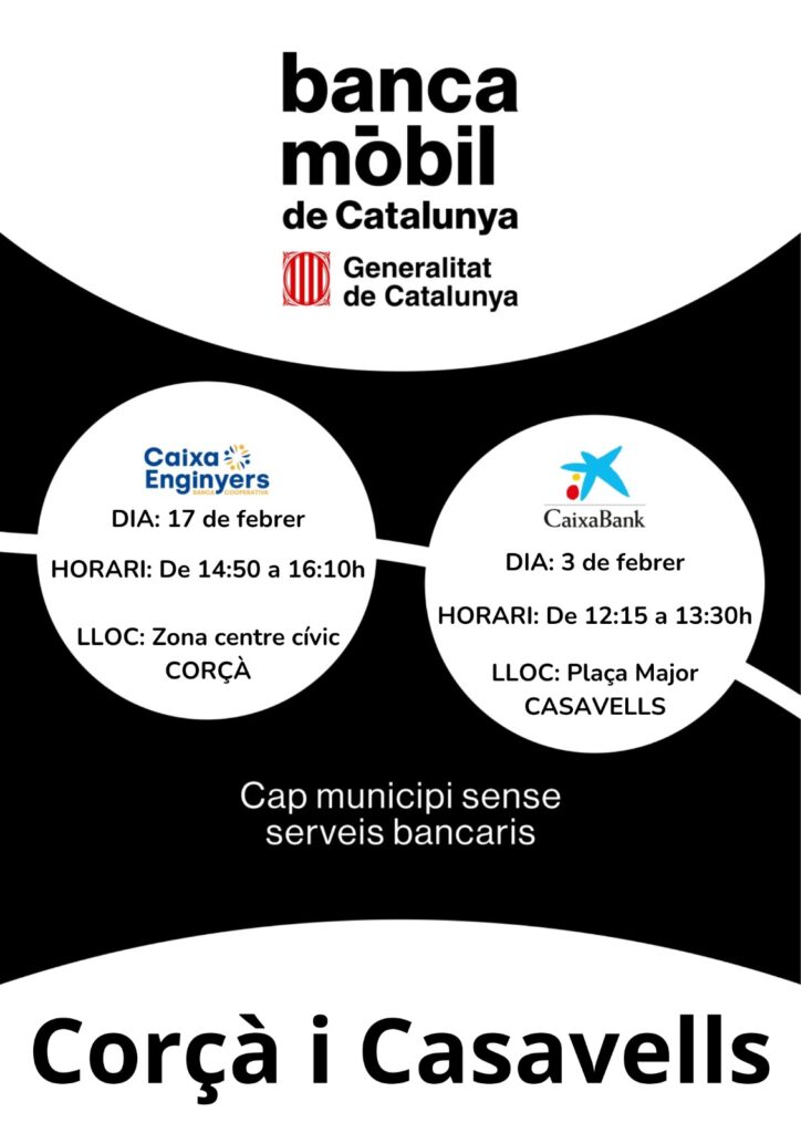 Com ja us vàrem informar, des de l’Ajuntament s’ha coordinat un nou servei de Banca Mòbil que estarà a disposició de tots els nostres veïns i veïnes, i que té com a finalitat portar els caixers automàtics i els serveis financers als municipis que no disposen d’oficina bancària.