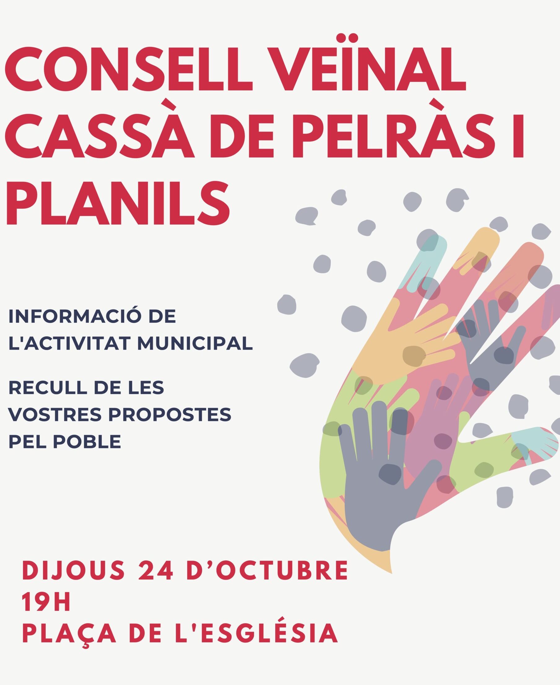 Aquest és un òrgan de participació ciutadana i de relació entre l’ajuntament, les entitats i la ciutadania. És un espai en el qual es tracten els temes que afecten la nostra vida quotidiana, es delibera sobre els assumptes municipals i es fan suggeriments i propostes de millora en la gestió municipal. Atenció amb el nou horari d’inici dels Consells Veïnals.