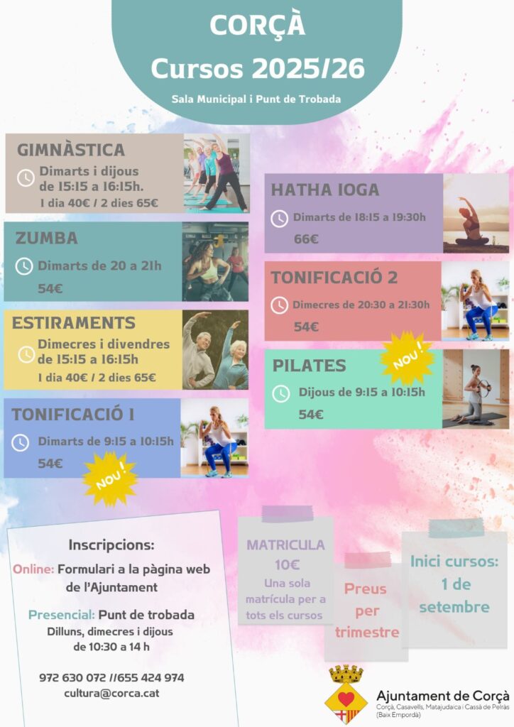 Us presentem els cursos programats pel curs 2025/26, a la Sala Municipal i Punt de Trobada Corçà