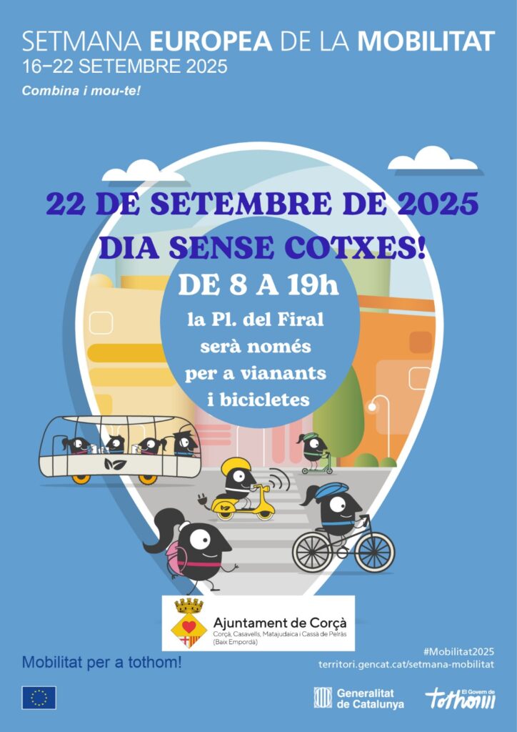 El proper dilluns dia 22 de setembre l’Ajuntament s’ha adherit a la Setmana Europea de la Mobilitat, i aprofitant que és el dia sense cotxes aprofitarem per restringir el pas als vehicles a la Plaça del Firal de 8 a 19 h.